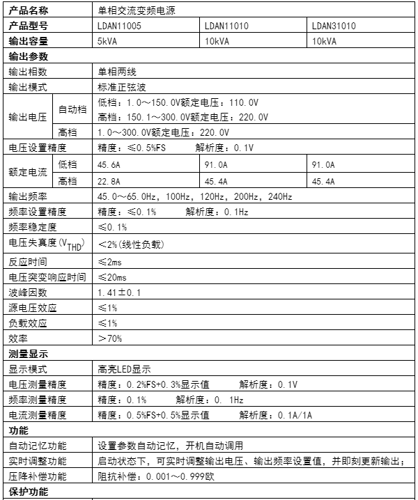 LDAN系列單相交流變頻電源可提供各種規(guī)格電壓,為客戶提供高純凈、高可靠性的正弦波電力輸出,適用于進(jìn)出口設(shè)備的生產(chǎn)檢測,專業(yè)應(yīng)用于工業(yè)、家電、小家電、認(rèn)證機(jī)構(gòu)、醫(yī)療設(shè)備、國防軍工、照明等領(lǐng)域,滿足產(chǎn)品的設(shè)計(jì)開發(fā)、產(chǎn)線檢測、質(zhì)保檢測、老化壽命測試、電壓頻率耐受等測試要求。產(chǎn)品采用業(yè)內(nèi)先進(jìn)的高頻逆變控制技術(shù),具有精度高、動(dòng)態(tài)響應(yīng)速度快、負(fù)載適應(yīng)性強(qiáng)、穩(wěn)定度高、輸出范圍寬等優(yōu)點(diǎn),是一款高性價(jià)比的交流變頻電源。